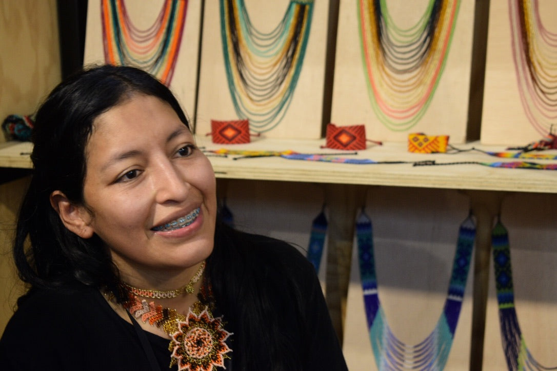 Los artesanos han sido formados por la familia de Maria Tisoy y Néstor Jacanamijoy quienes heredaron de sus padres esta tradición ancestral. Sus diseños evocan la naturaleza, el sol, las montañas y los caminos, cada brazalete es una inspiración que refleja sus pensamientos y creencias.